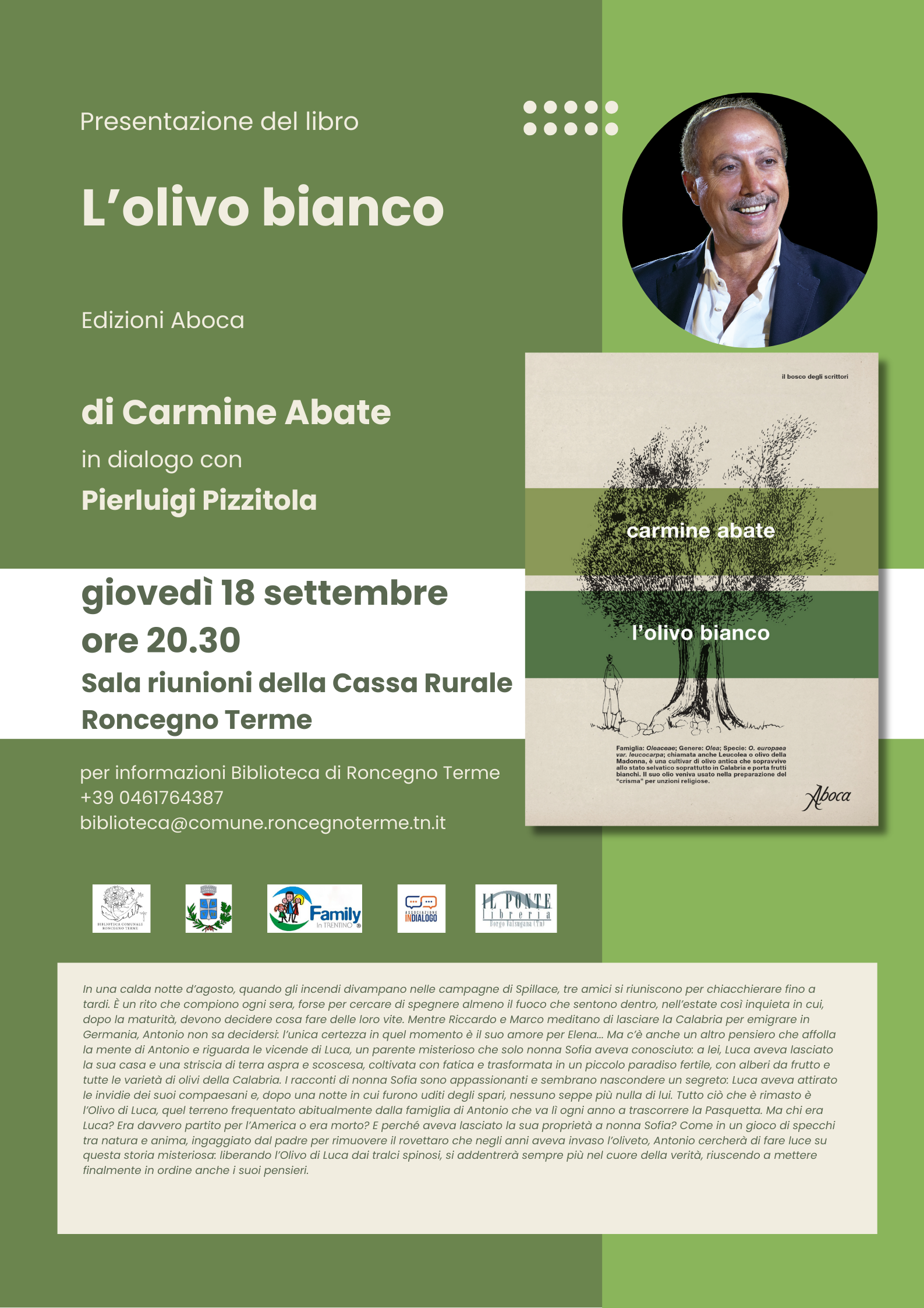 Carmine Abate in dialogo con Pierluigi Pizzitola presenta "L'olivo bianco", Edizioni Aboca