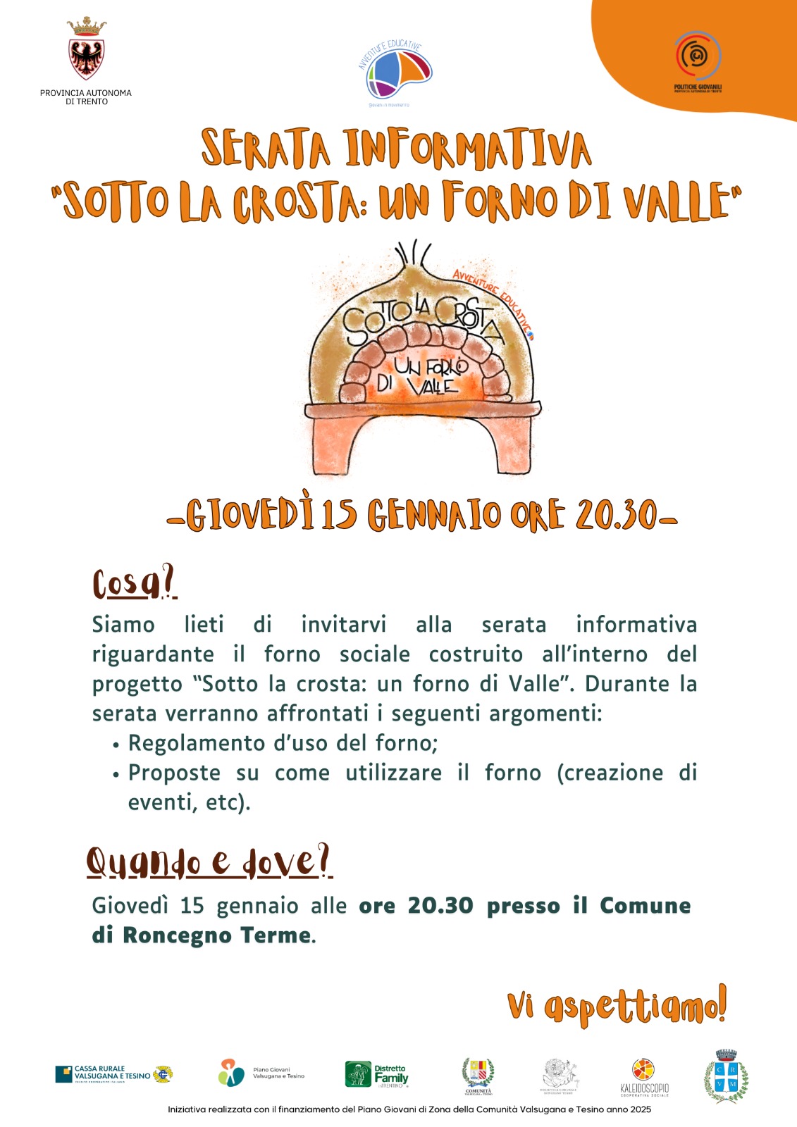 Il forno di comunità "sotto la crosta", realizzato con il progetto finanziato da Comune di Roncegno Terme e piano giovani di zona della Comunità Valsugana e Tesino è pronto.